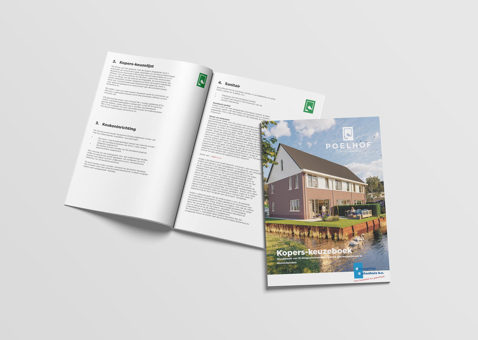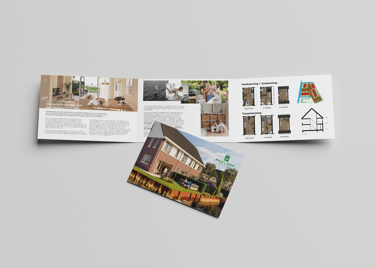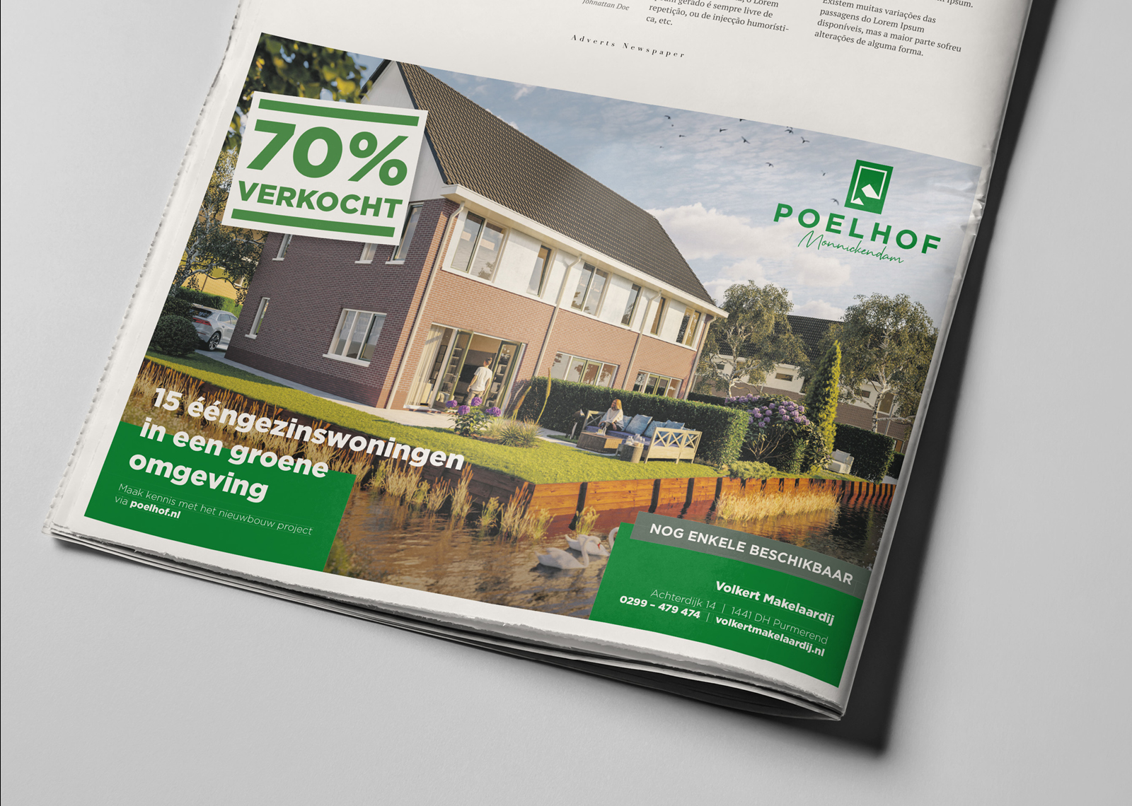 Ton de Jong van Volkert Makelaardij aan de lijn met een vraag… Kunnen jullie ‘iets’ ontwikkelen voor een nieuw te realiseren concept in Monnickendam? Dat concept werd Poelhof Monnickendam, een project met 17 nieuw te bouwen ééngezinswoningen in Monnickendam. Een nieuw logo gebaseerd op de vorm van de oude boerderij Poelhof die er stond. Vervolgens bouwden wij een nieuwe website om geïnteresseerde kopers te informeren over het aanbod. Een website waarvoor wij ook een header video produceerde met (vinden wij) fantastische drone beelden van Monnickendam. Wat volgde waren een beknopte verkoop brochure en een social media publiekscampagne. Resultaat… alle woningen binnen no time verkocht!